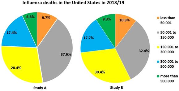 Our data show that a significant proportion of participants overestimated the death toll of influenza in the season prior to the current Covid-19 pandemic, but overestimation was much more prominent for cases in the U.S. than in Austria. This might have been due to that knowledge of these figures was probably better for the country participants lived in. Secondly, continuous reporting of the high Covid-19 death toll in the U.S. could have influenced influenza estimates. Understanding that SARS-CoV-2 (particularly, the new mutants) is much more dangerous than the influenza virus and that vaccination against Covid-19 is thus even more important than that against the seasonal flu seems vital to successfully combat Covid-19 in public health strategies.